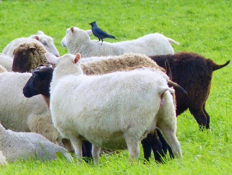 Sään kylmenemiseen on hyvä varautua ennakolta. Varis teki tuttavuutta lampaiden kanssa ja otti ilmaista kyytiä varsinkin tämän lampaan turkilla Vähässäkyrössä.